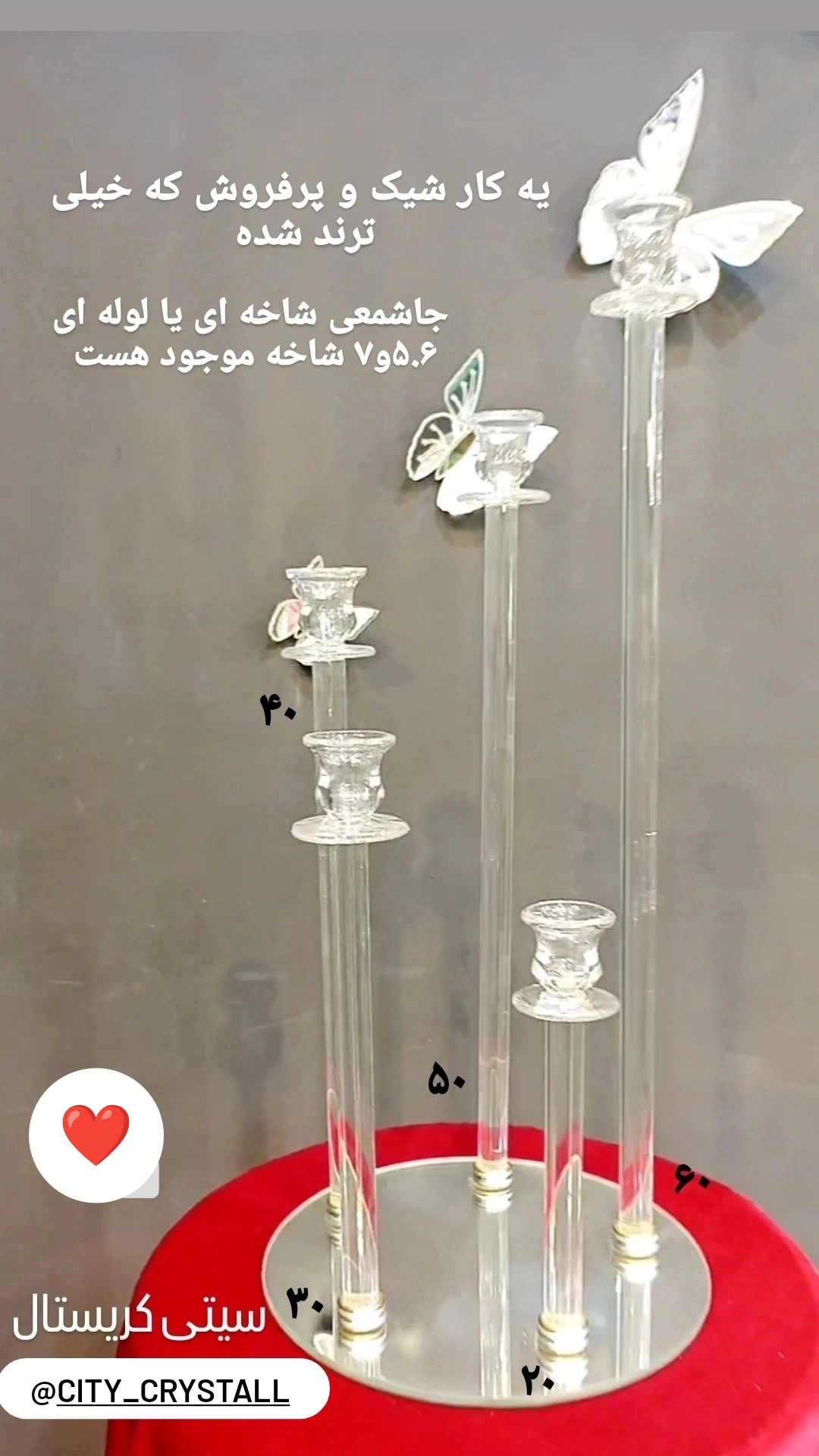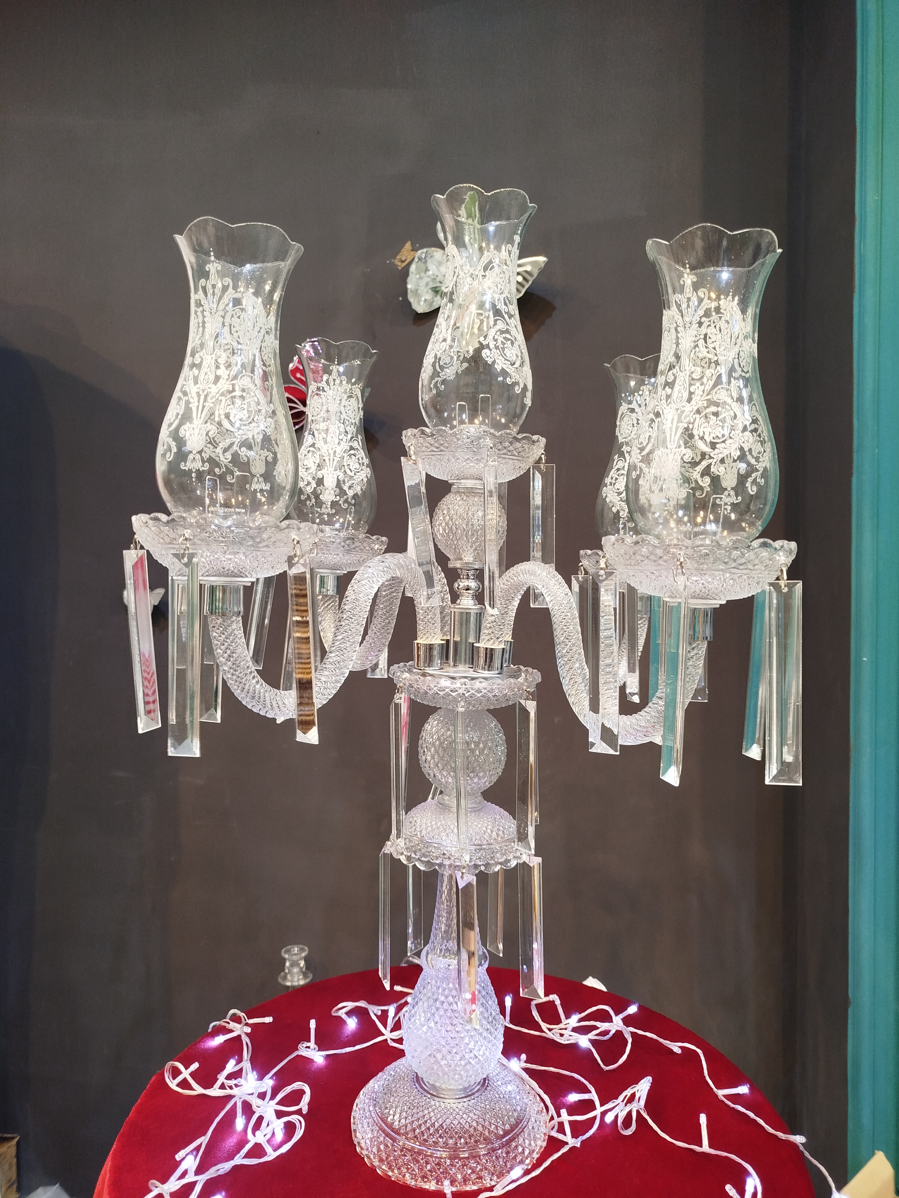 شمعدان ۵ شعله ستون کریستال باکارات (کاپ گل دار) ارتفاع ۶۰ سانت۳٬۸۰۰٬۰۰۰ تومان